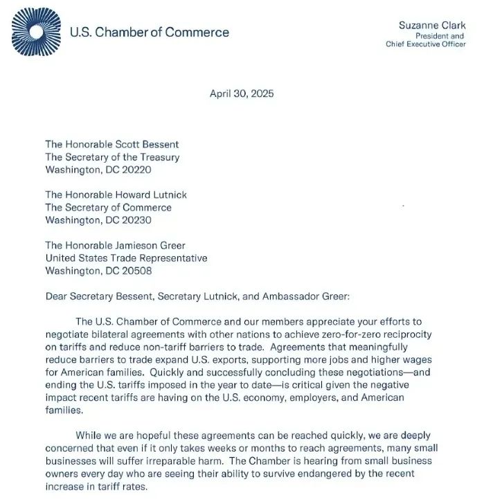 美国商会致信白宫:赶紧减免关税我们被小企业的求助淹没了